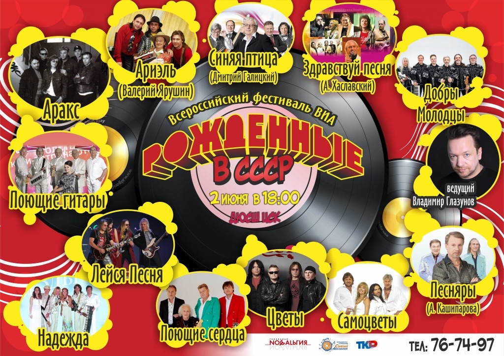 2 июня 2018 года на стадине ЦСК в Рязани прошёл фестиваль вокально-инструментальных ансамблей (ВИА) "Рождённые в СССР". Гостями незабываемого вечера стали легендарные коллективы из не очень далёкого прошлого - "Самоцветы", "Песняры", "Аракс", "Синяя птица", "Добры молодцы", "Лейся песня","Поющие гитары", "Здравствуй песня", "Цветы", "Пламя". И, конечно, такой праздник музыки не мог состояться без нашего любимого "Ариэля" с участием, при поддержке Челябинского регионального общественного движения "Развитие региона", замечательных музыкантов из "золотого состава" группы Валерия Ярушина и Бориса Каплуна. Телеканал "Ностальгия" осуществлял трансляцию фестиваля.